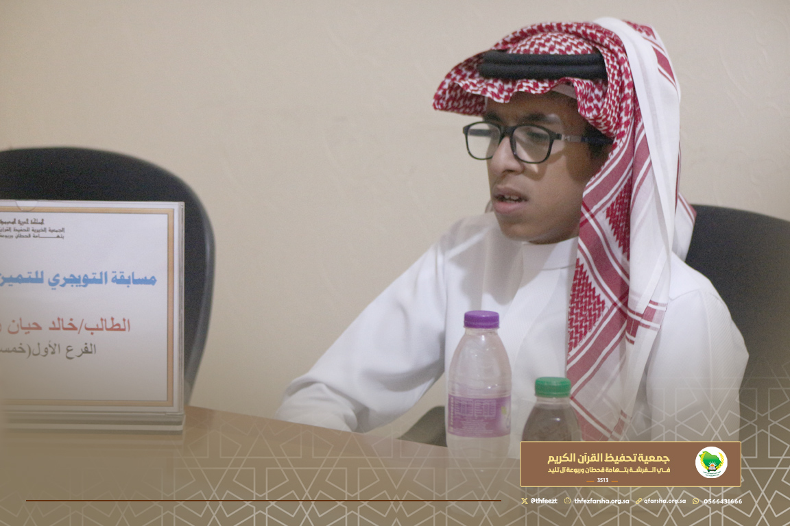 أقامت الجمعية التصفيات الداخلية لمسابقة معالي الشيخ عبد العزيز التويجري – رحمه الله – على مستوى حلقات الجمعية، بمشاركة (8) طلاب من مختلف الحلقات.