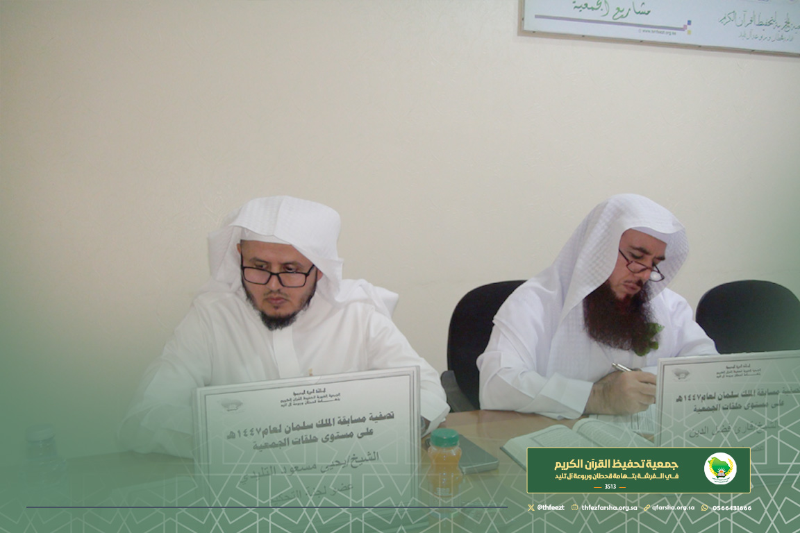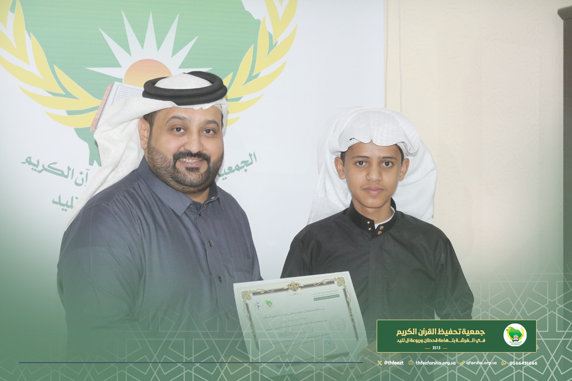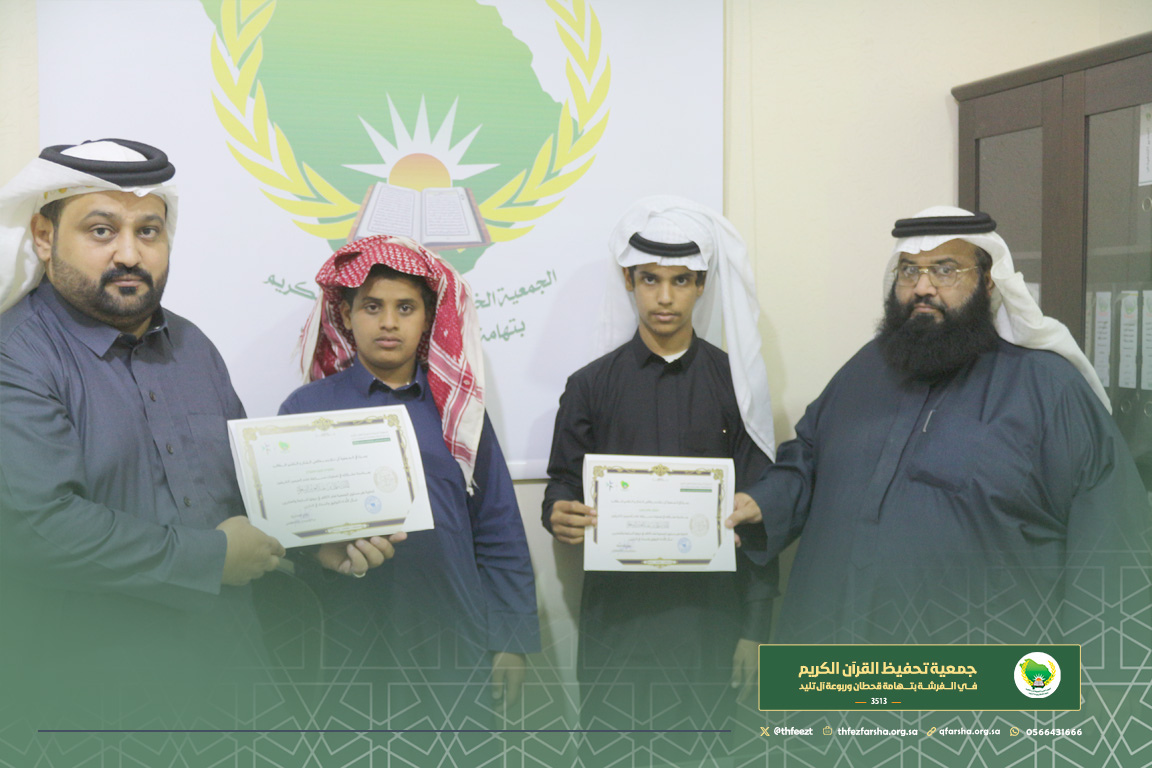 شهدت الجمعية مساء يوم الأربعاء 28 جمادى الأول 1447هـ، مشاركة مميزة من طلابها وطالباتها في مسابقة خادم الحرمين الشريفين الملك سلمان بن عبد العزيز لحفظ القرآن الكريم وتجويده وتفسيره، وذلك على مستوى الجمعية وفي مختلف الفروع والمستويات المخصصة للمشاركين.